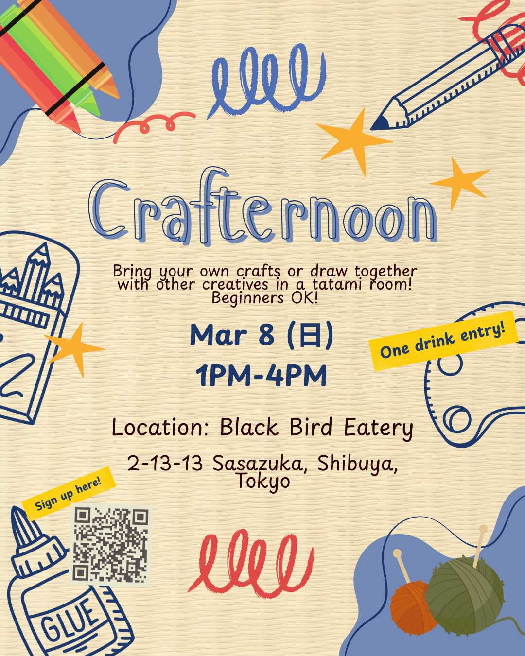 🎨 Crafternoon: Bring Your Own Crafts / Draw Together in a Tatami Restaurant